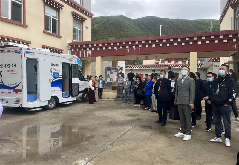 作為現(xiàn)場(chǎng)會(huì)其中一個(gè)重要環(huán)節(jié),顯浩DR體檢車(chē)佇立色達(dá)縣洛若鎮(zhèn)衛(wèi)生院門(mén)診大樓旁,迎來(lái)與會(huì)人員集體參觀交流。