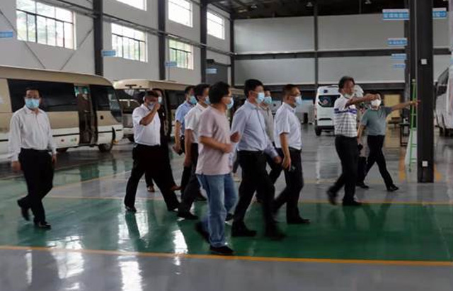 市領(lǐng)導(dǎo)們逐一參觀了正在生產(chǎn)中的醫(yī)療體檢車、救護(hù)車、移動核酸檢測車和移動P2實(shí)驗(yàn)室四款車型,我司技術(shù)人員向領(lǐng)導(dǎo)們介紹了不同車型的使用場景和功能。