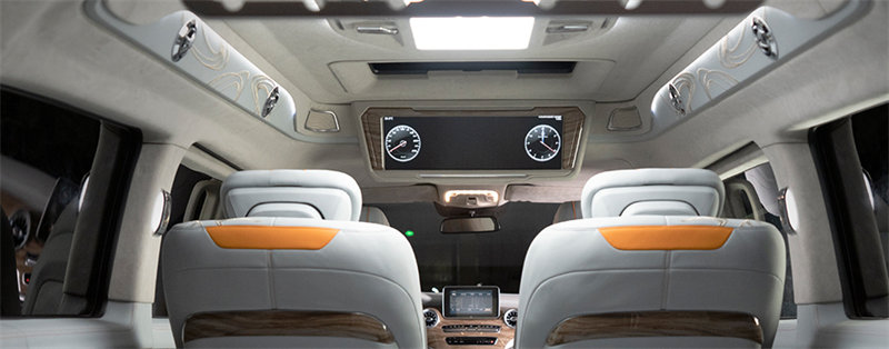 改裝商務(wù)車集成式總控顯示屏,燈光、音響、投影,一觸即控,隨時(shí)辦公 休閑,配備懸浮式多媒體屏幕雅馬哈音響系統(tǒng)3M輕量型隔音