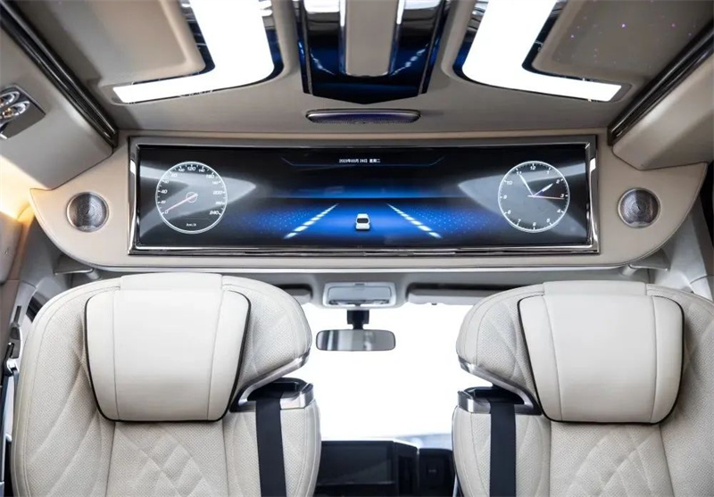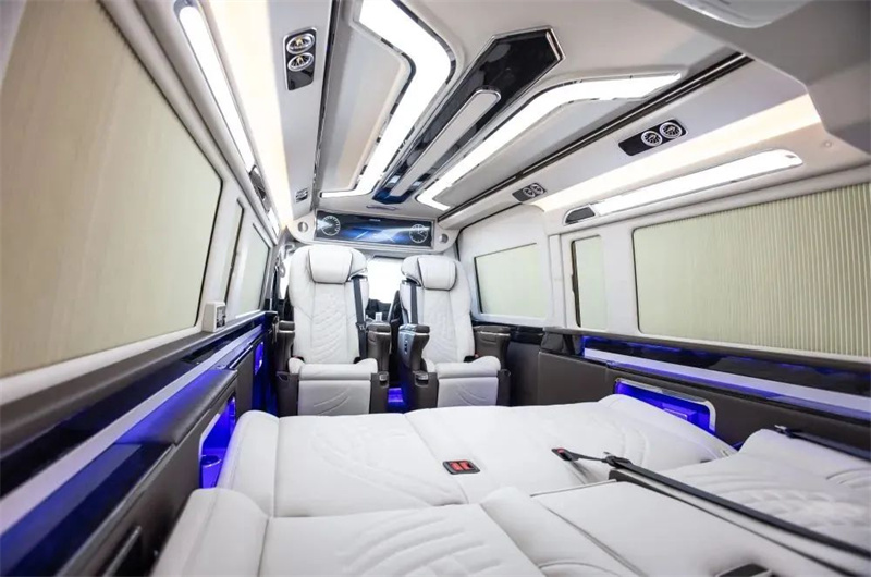 改裝商務(wù)車三連排的沙發(fā)床也可以180度的平躺,方便日常出行困了累了能夠及時的休息。頂部豪華定制頂燈,造型美麗,色彩鮮明,多款顏色切換,點點星星的頂部襯托著整車,氛圍感也得安排上。