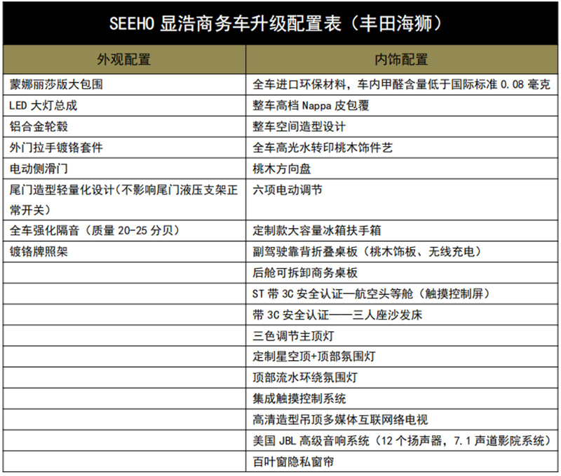 在內(nèi)飾設(shè)計上改裝商務(wù)車豐田海獅注重簡約與大氣的完美結(jié)合,在展示商務(wù)車本身尊貴與大氣的同時,也將帶來不一樣的旅行體驗。